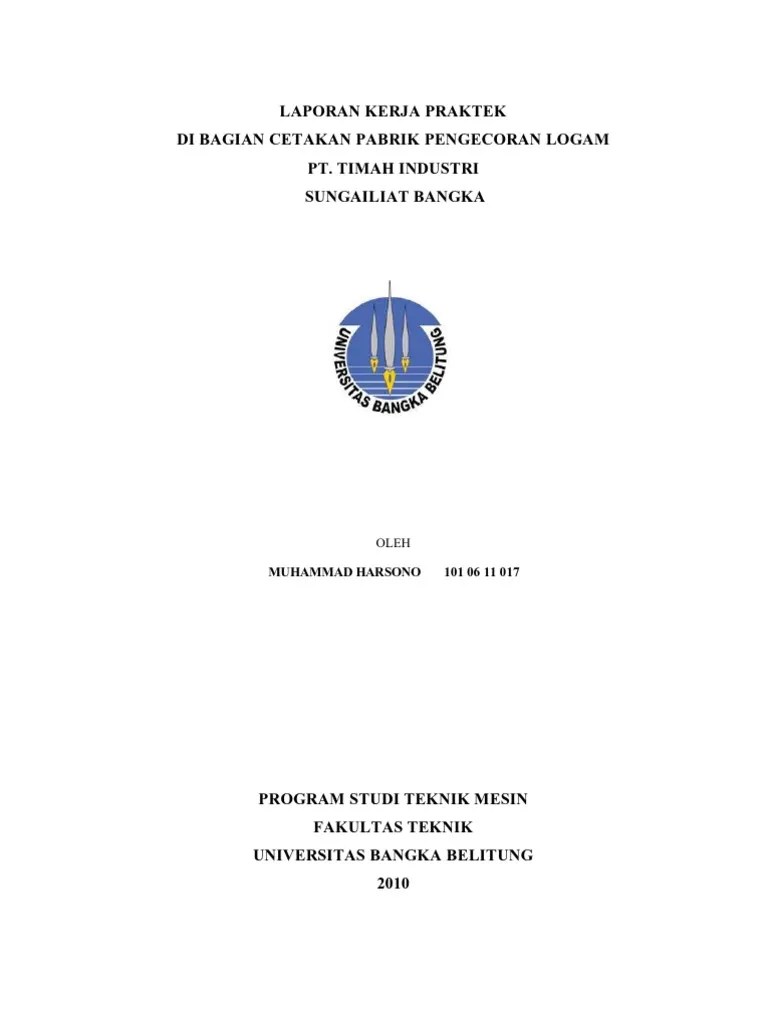 Laporan hasil praktik kerja industri. Laporan disusun sebagai salah satu syarat . Inilah yang dapat kami bagi terkait contoh laporan pkl teknik alat berat. Program studi pendidikan teknik mesin. Laporan ini kami susun berdasarkan hasil pengamatan di lapangan, studi.